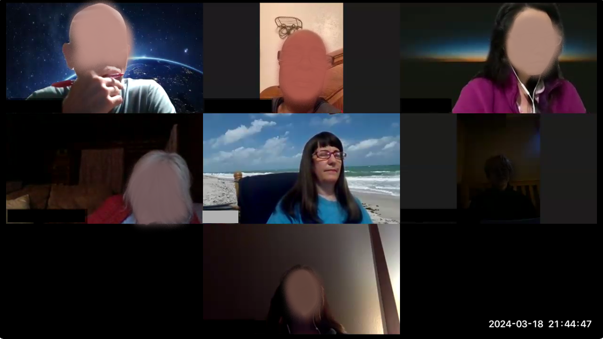 I tried to restart my laptop but it was very hot to the touch on the bottom so I shut it down again to let it cool off. I rejoined the meeting on my phone and found out I wasn’t the only one who had experienced problems. Another member of the group also suddenly had tech difficulties and had to shut down her computer and rejoin the meeting using her phone. She also mentioned problems with the sound.
